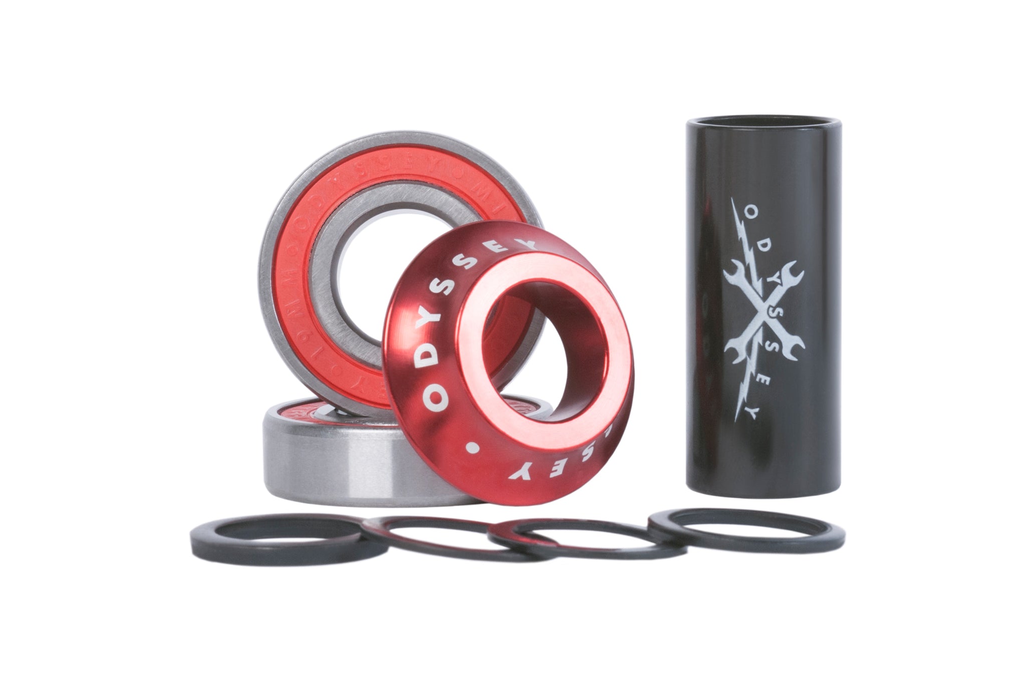 Odyssey branded 6061-T6 aluminum dust spacer included.