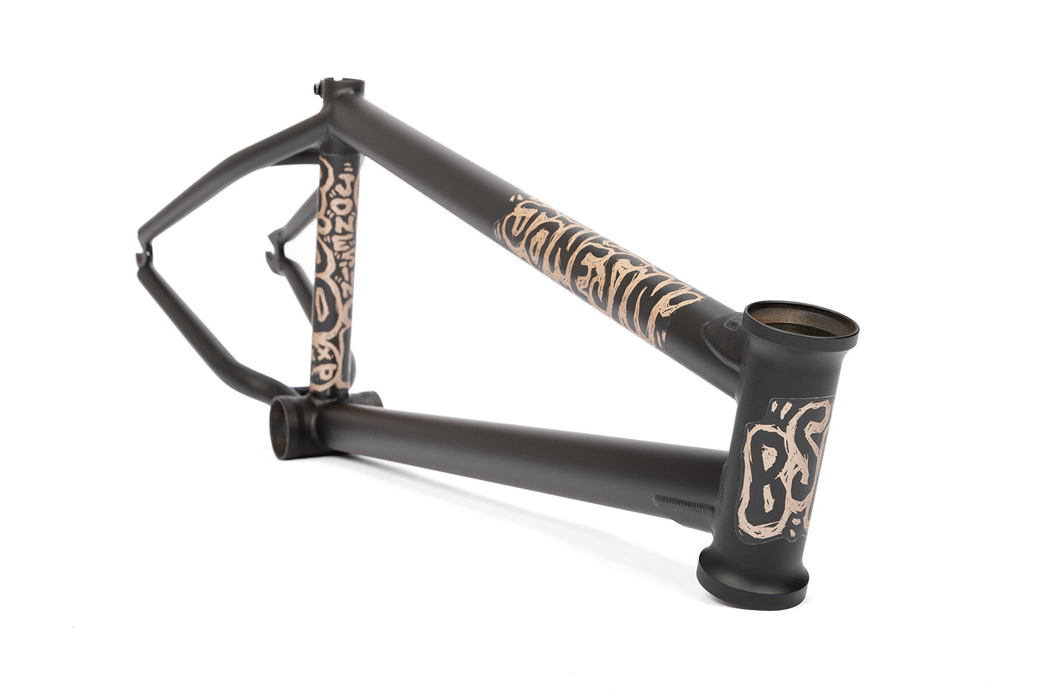 The BSD Jonesin’ frame is Sam Jones' signature frame. As you may know, Sam is a master of front-end tricks, and he designed his new frame with a steep 76° head angle specifically for those moves. It also features a short 12.7–13.2" rear end, a 8.9” standover height, and our new superscoop chainstay tubing for added tire clearance.
