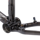Max sprocket size with proper chain alignment is 39 tooth. Seat tube is slotted for traditional 28.6mm seat clamp or Quick Release 28.6mm seat clamp. Rear drop-out spacing is traditional BMX 110mm and accepts 3/8″ axle.