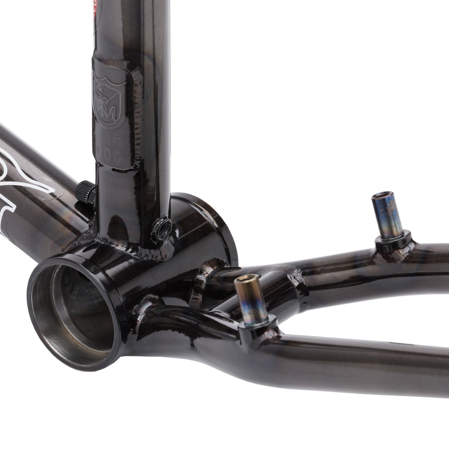 Engraved Shield on Headtube. Engraved ’87’ on BB shell. MAD DOG-tag on seat-tube