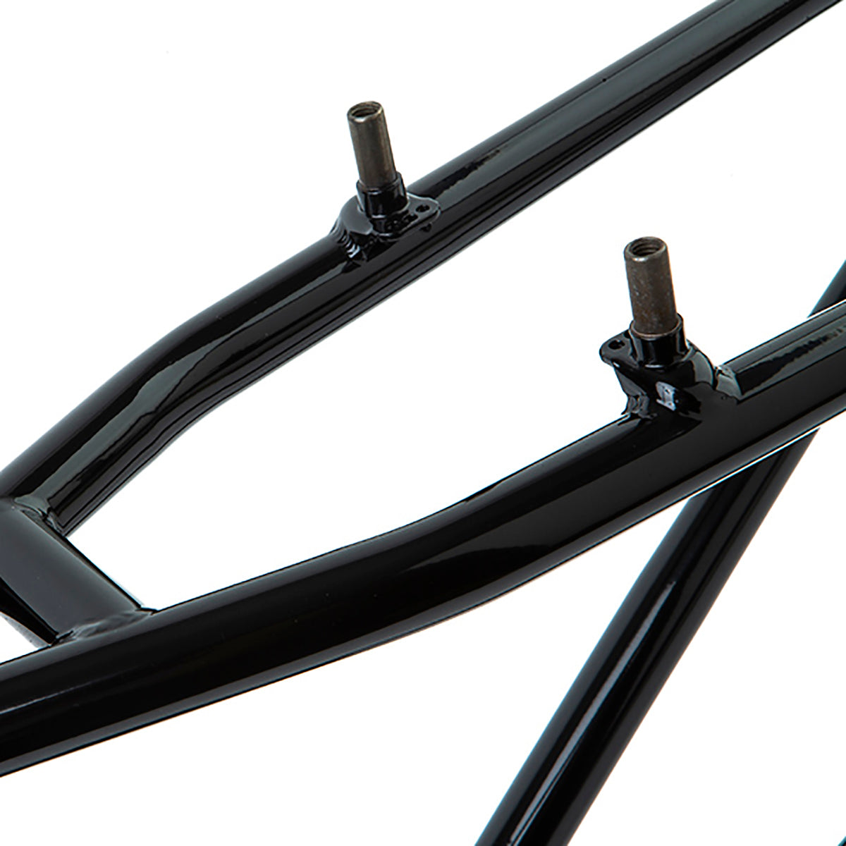 Whether you’re keeping the BMX dream going or chasing that NAG #1 plate, the Steel Panther 24" is the ultimate real steel racing chassis. 100% chromoly construction with our butted, Thermal-X tube set. Two top tube options with corresponding rear end lengths for each. Euro-BB, V-brake mounts, 3/8" drops with built-in tensioners and a machined head tube with a gusseted down tube. Updated stay design for improved chain clearance.