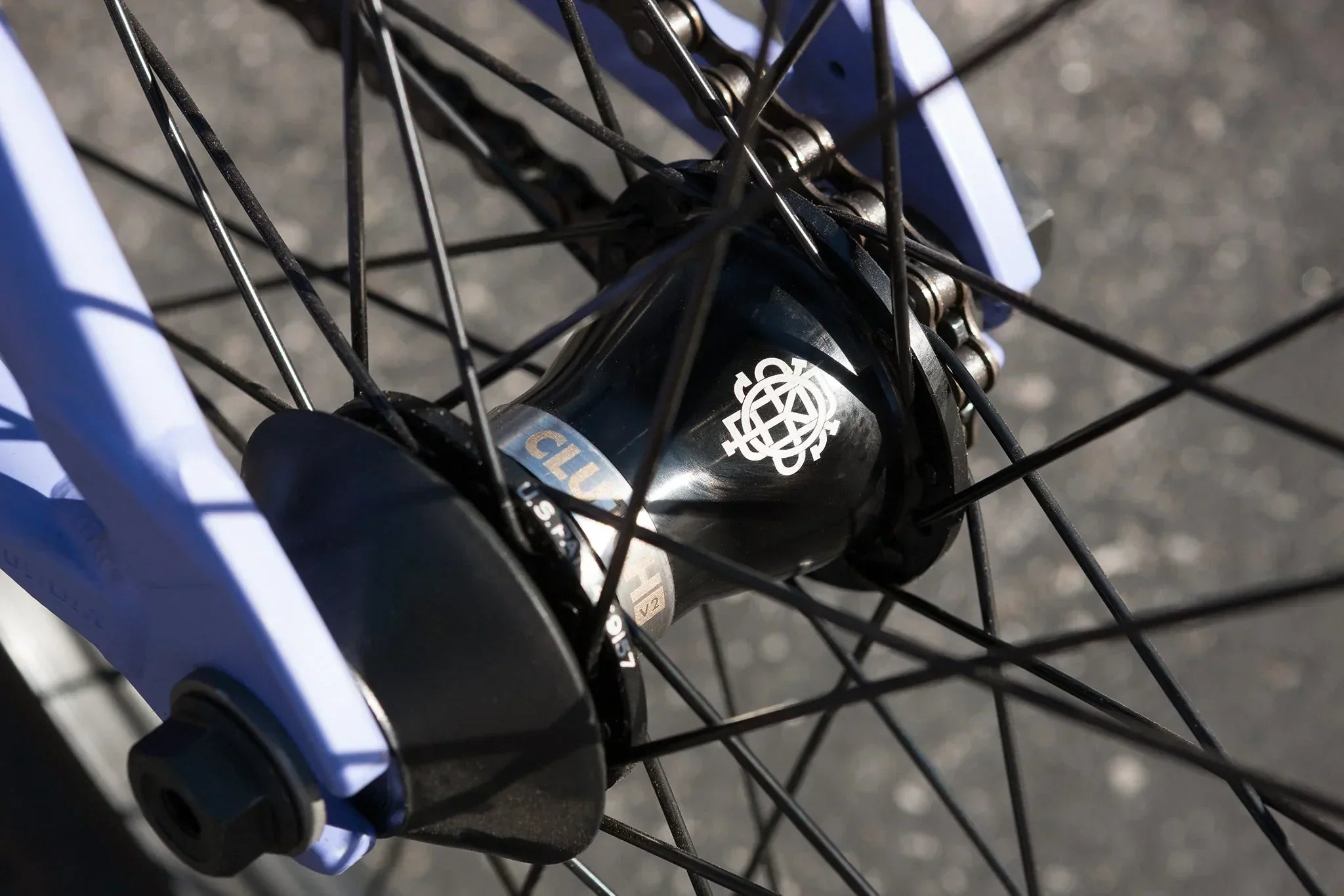 Rear Hub: Odyssey Clutch v2 freecoaster, 36H, 14mm female axle w/ 9T driver, non-drive PC guard