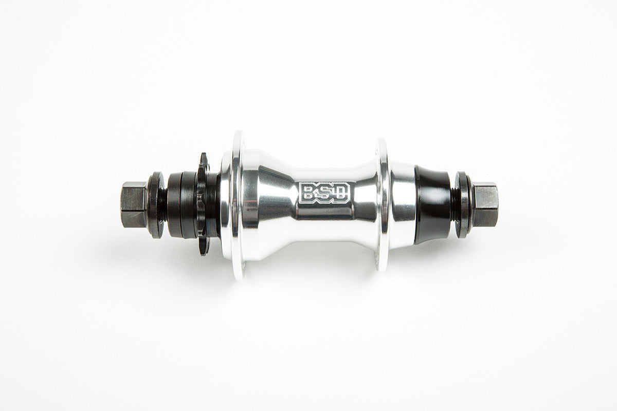 BSD designed the Back Street Pro hub around their own custom driver with skip free mechanism while still maintaining a compact sized shell. With features such as bombproof 14mm female bolts, chromo cones, a massive female axle, hefty 6903 bearings and also available in a male 14mm axle version. You know this hub is built street tough…