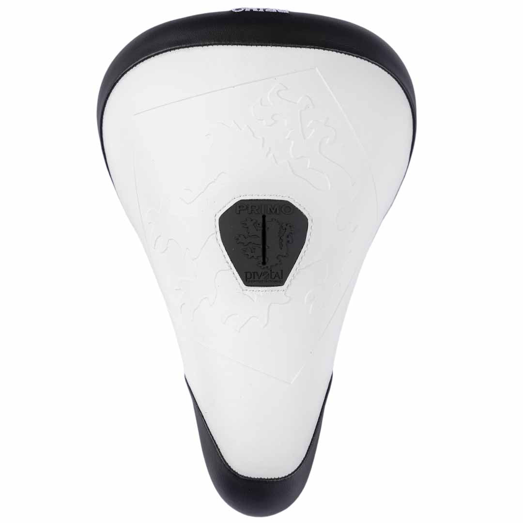 The classic Primo Balance Seat is back. Black front and rear panels with a White top panel with embossed griffin logo and a stitched Primo logo on the rear. A new modern take on the classic Hemorrhoid seat.