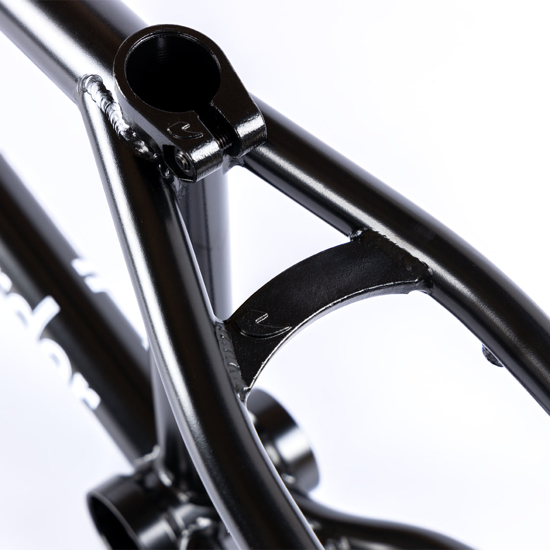 The 187 V3 is designed for transitions. Short and responsive back end with the lowest stand over in the range. It now features ovalized tapered chain stays to allow for 28 tooth sprockets. The frame features an IC seat clamp and seat stay bridge along with top tube and down tube gussets. This frame uses 4130 Sanko Chromoly Steel, for maximum strength and minimal weight.